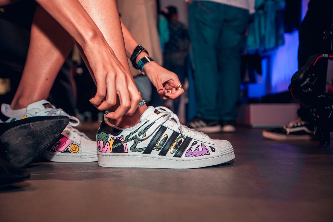 Workshop involved interesting insights and anecdotes around their exploration of digital art, the emergence of AR & VR, NFTs, etc. They then proceeded to highlight a special AR showcase featuring 3 classics – Stan Smith, Superstar, and Forum. Unique QR codes led the attendees to special filters that enabled them to experience themed digital artworks around the sneakers. The events also featured a digital photo-booth where attendees got clicked against dynamic filters.