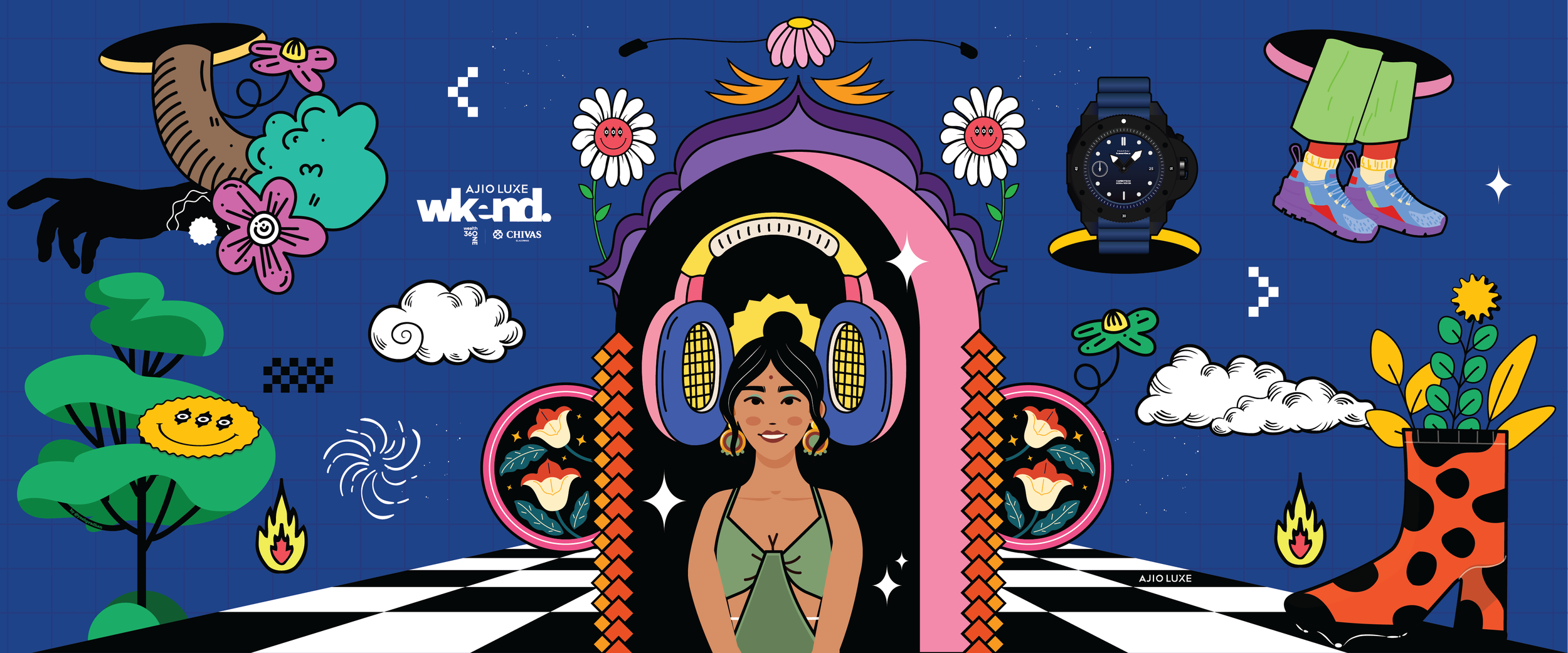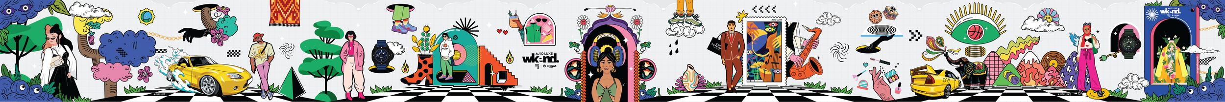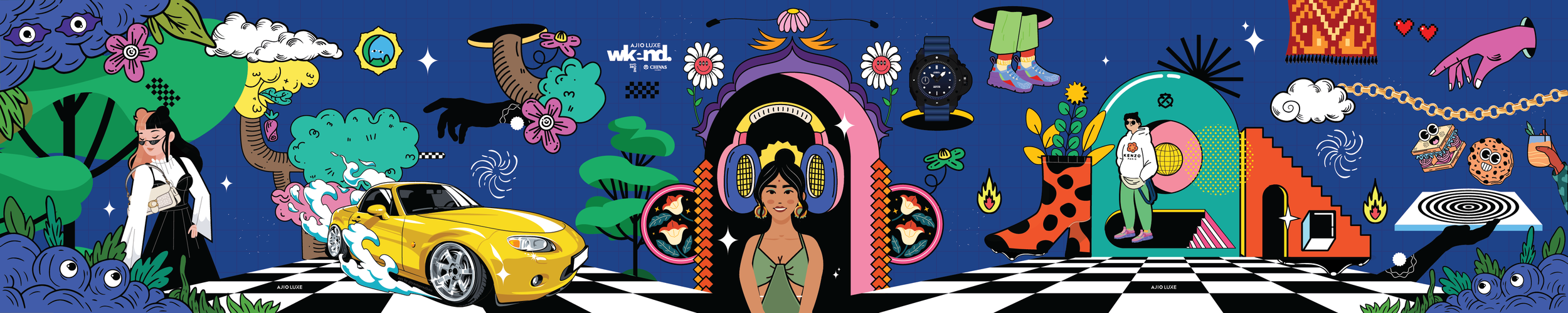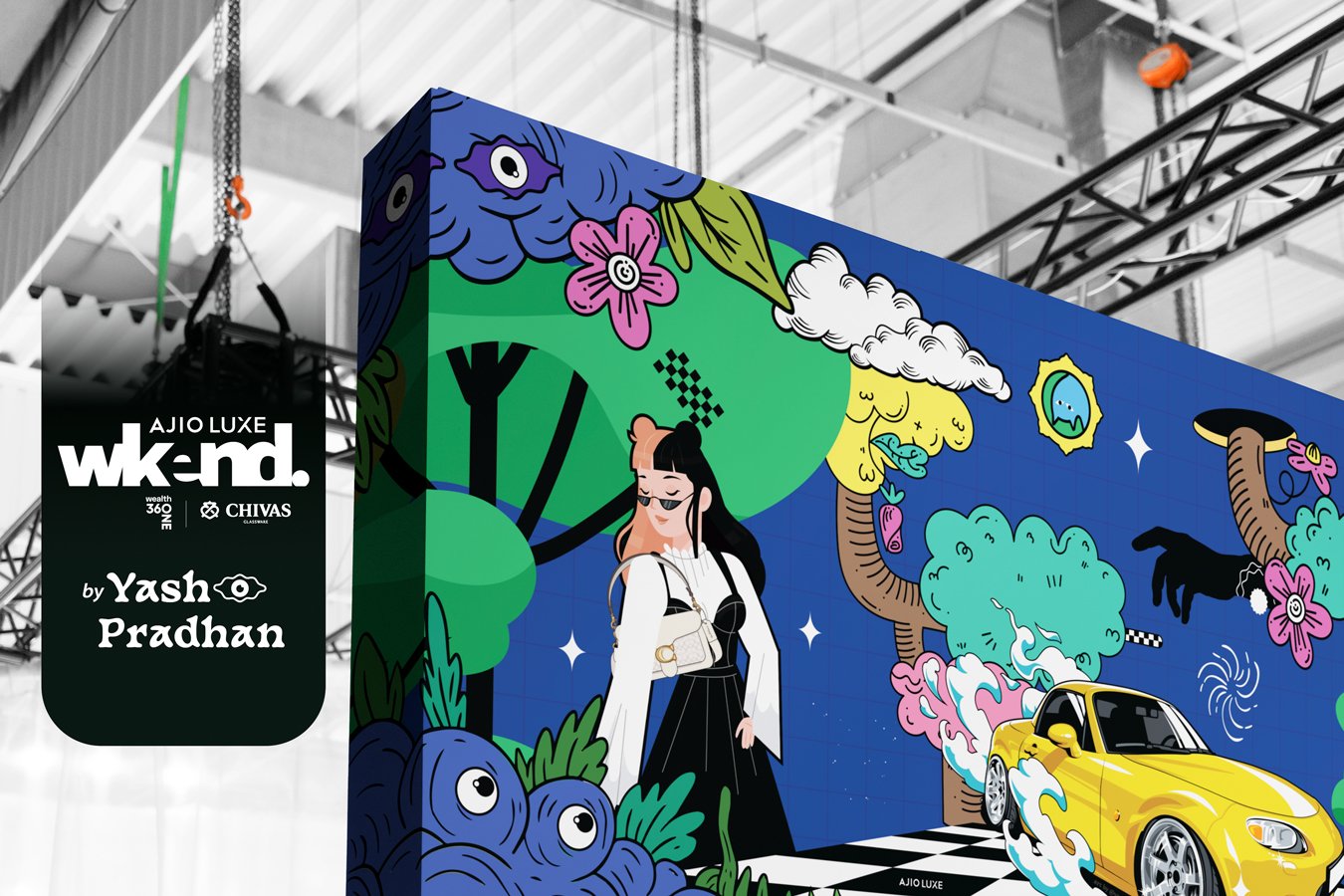 I was invited to design 4 wall mural installation for the Ajio Luxe Wkend 2023.