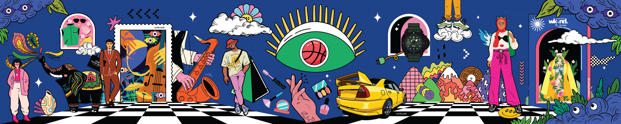 The illustration depicts the same through vivid colours from the brand and take hints from the exhibiting the brands, the elements and design is strected across various categories from Automobiles, Fashion & Lifestyle, Beauty, Jewellery, Watches, Home, Culinary and more.