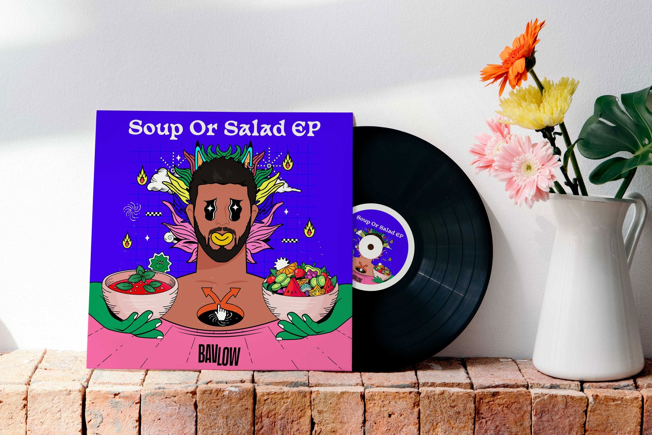 The artwork contains a composition of all 3 tracks and it’s titles from Soup or Salad, Cheerful Facade & Perspective with a portrait of the artist himself. The EP Artwork depicts Balow’s thought which is meant to dive into stories of human observations & self-reflection, shedding light on struggles with depression, identity & mental health in general, as depicted in the spoken word samples sprinkled throughout.