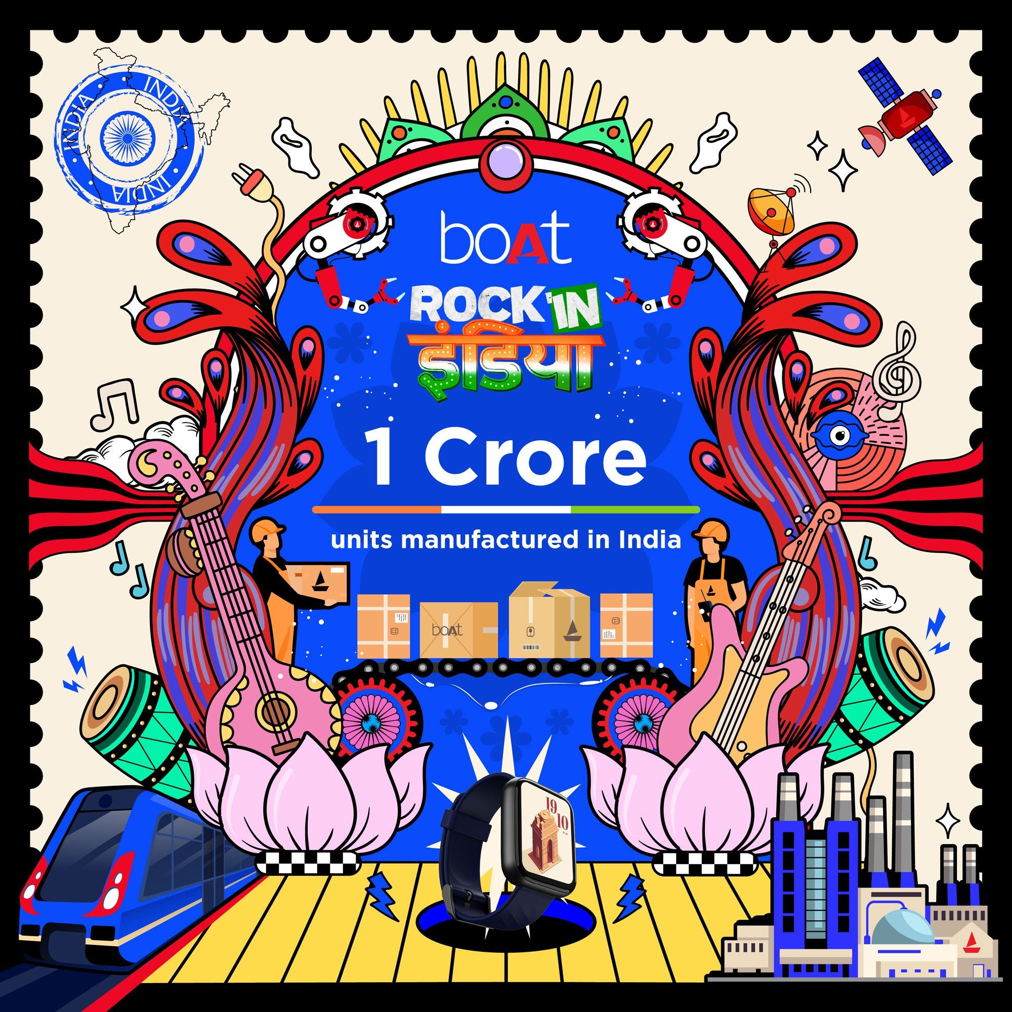 Celebrating this milestone on Republic Day of India 2023, boAt collaborated with Yash Pradhan to create an AR integrated & animated Artwork to depict Industrialisation with respect to our factories in India, the manufacturing processes, product unboxing and 1 crore milestone achievement. boAt became the first Indian smartwatch brand to manufacture 1 crore Make in India products.