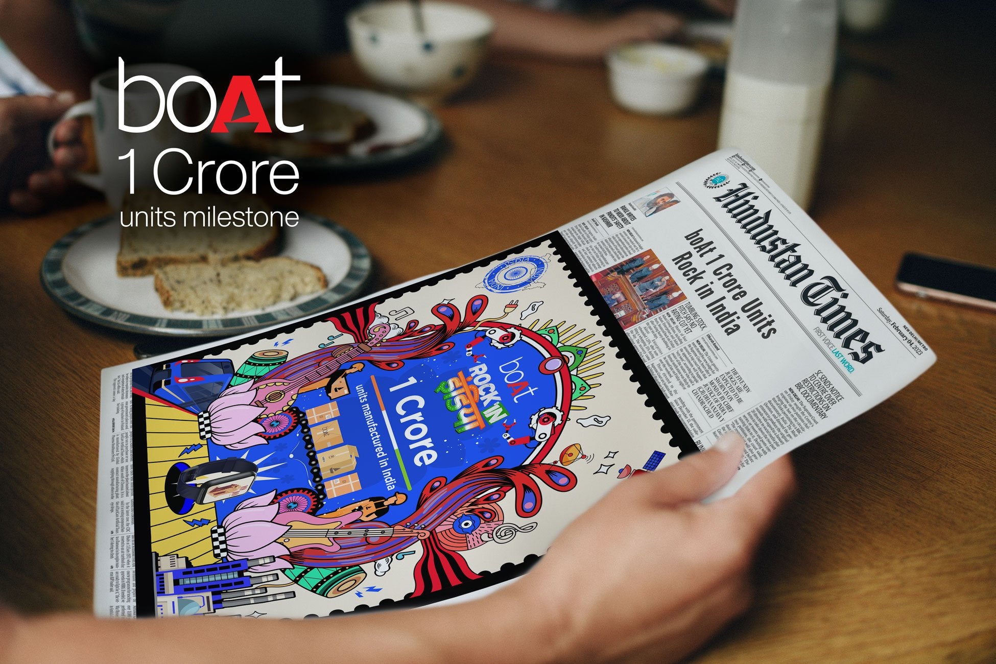 The design cohesively showcases in a stamp design to mark,celebrate this process and milestone that boAt has achieved.
