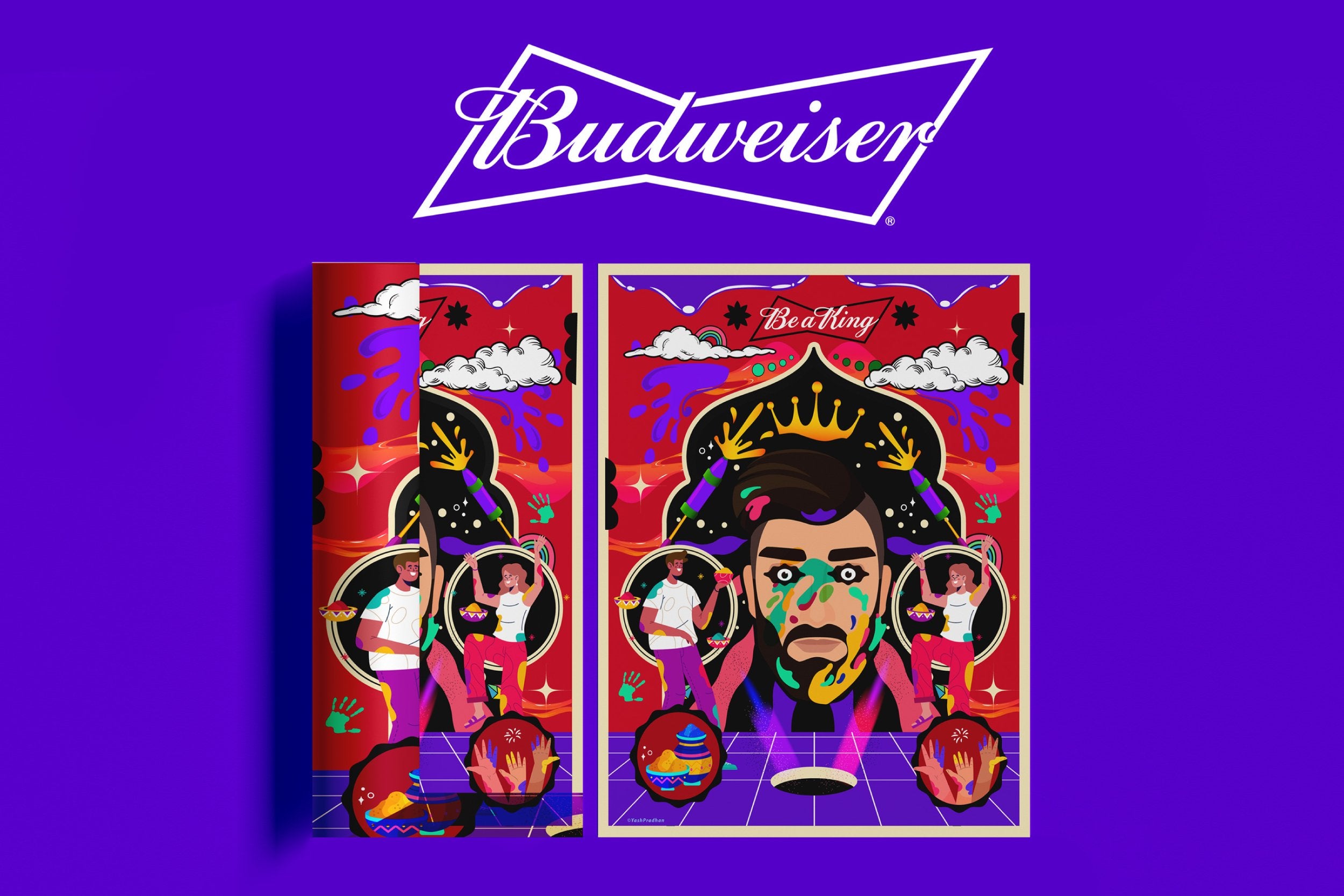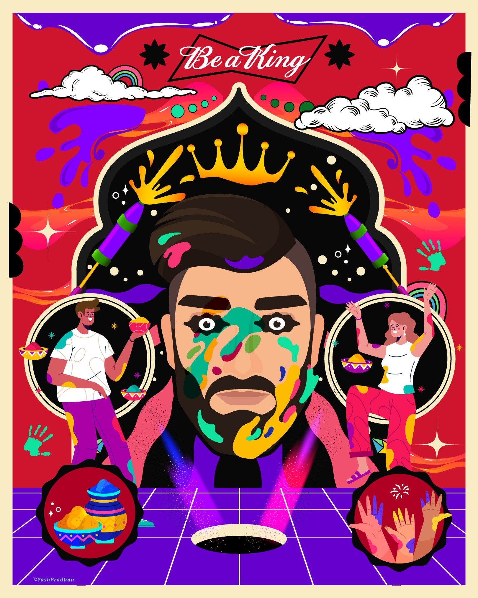 The aim was to create an illustration for Budweiser around Holi with the theme: We are all kings.