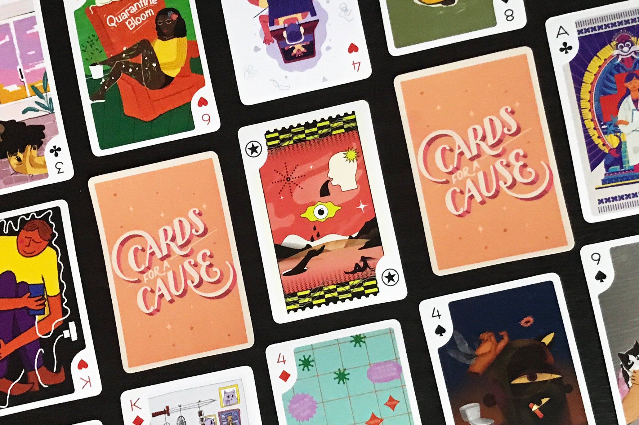 The deck of playing cards is a collective effort of 55+ artists who illustrated their feelings about the current situation of the world.