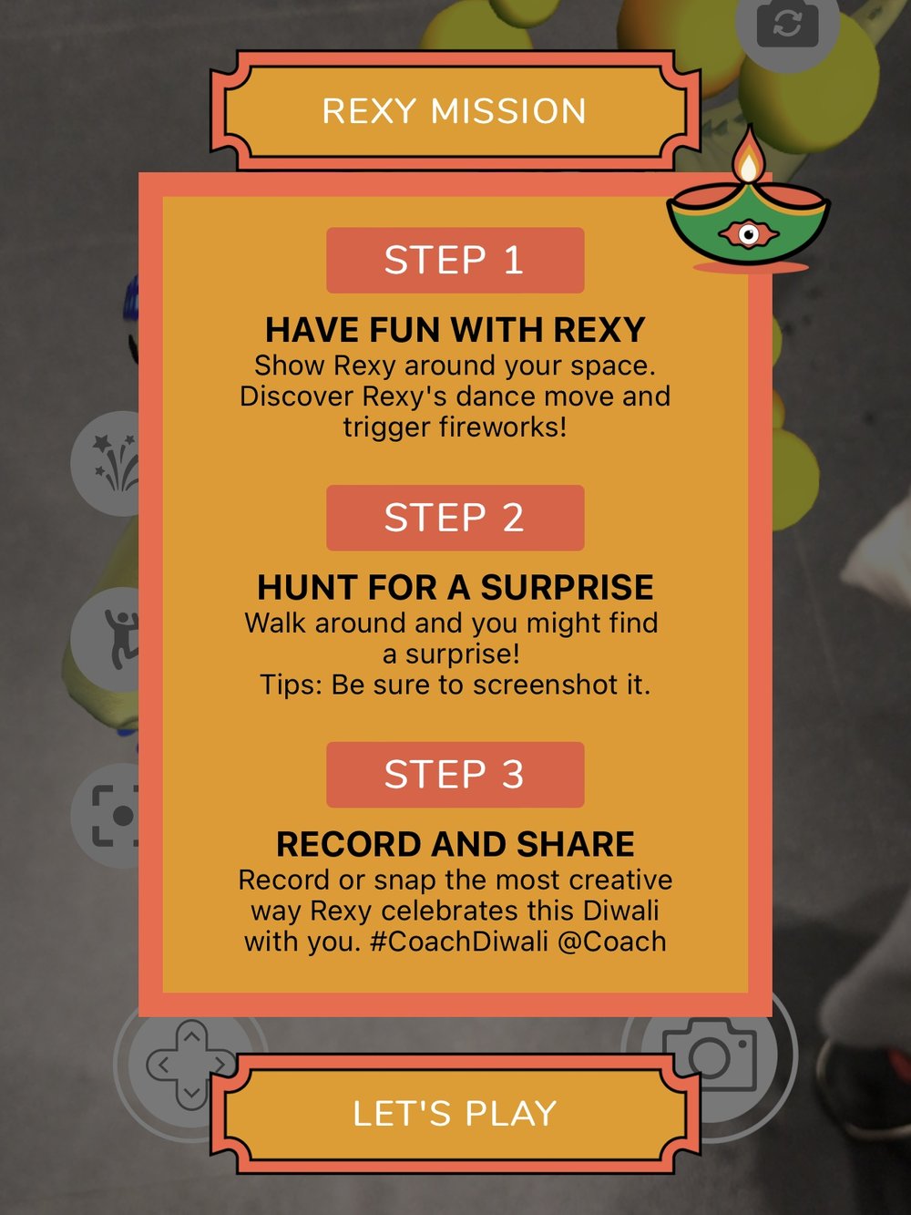 The designs were also taken further into an AR integrated game to explore the Coach store with Rexy developed by the Coach Team.