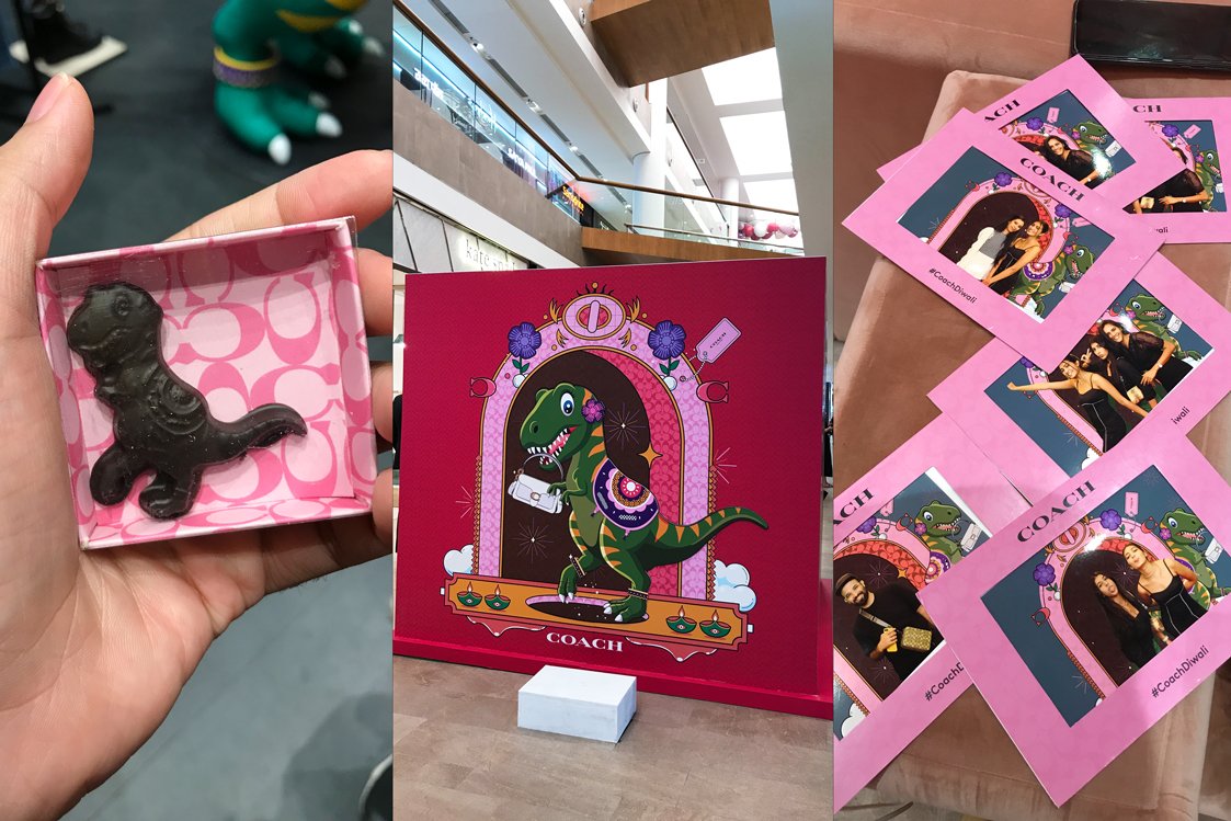 In the illustration, you can see Rexy ready to commemorate Diwali surrounding and doning details of Indian designs that reflect the festive spirit. The artwork depicts Rexy with Coach turn locks, hang tags, and tea roses embellished with house codes.
