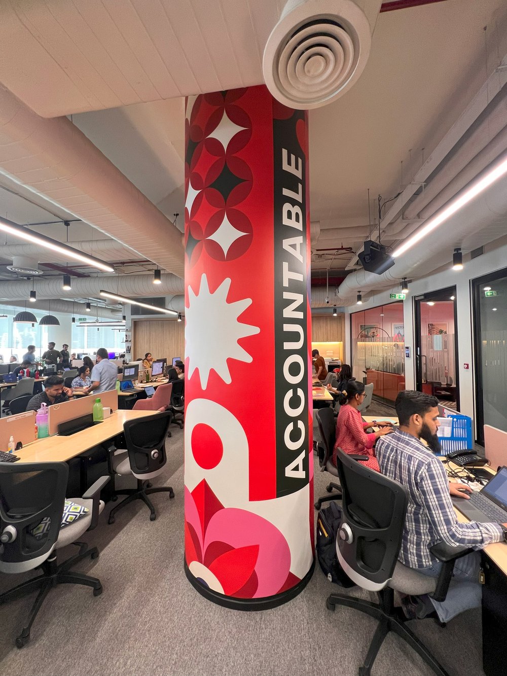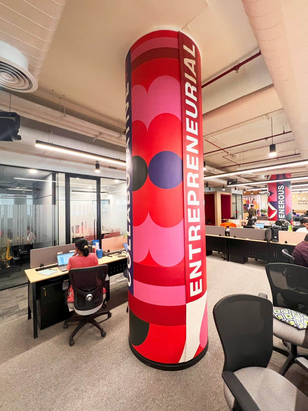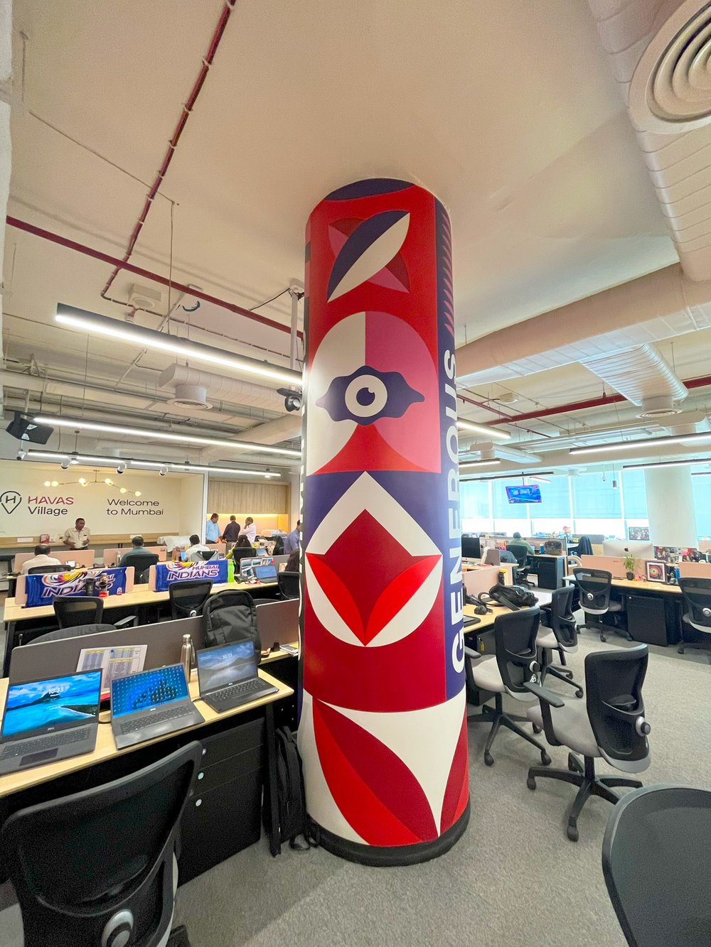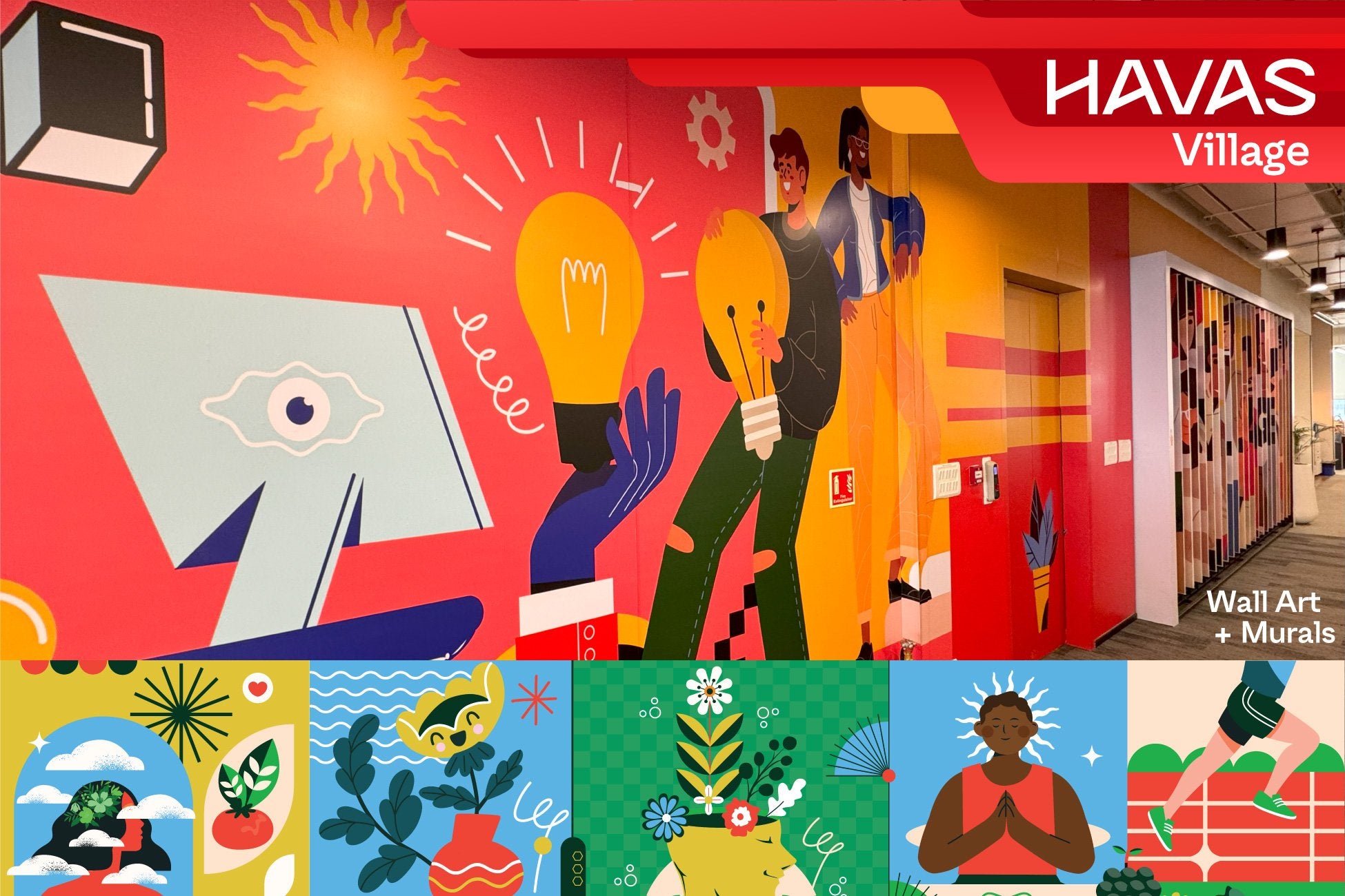 Havas Village, the innovative new office space of Havas India situated in Mumbai, features stunning wall artworks designed by Yash Pradhan. These artworks are thoughtfully integrated into various areas of the workspace, including the cafeteria, round pillars, and lobby area and more creating a vibrant and inspiring environment.