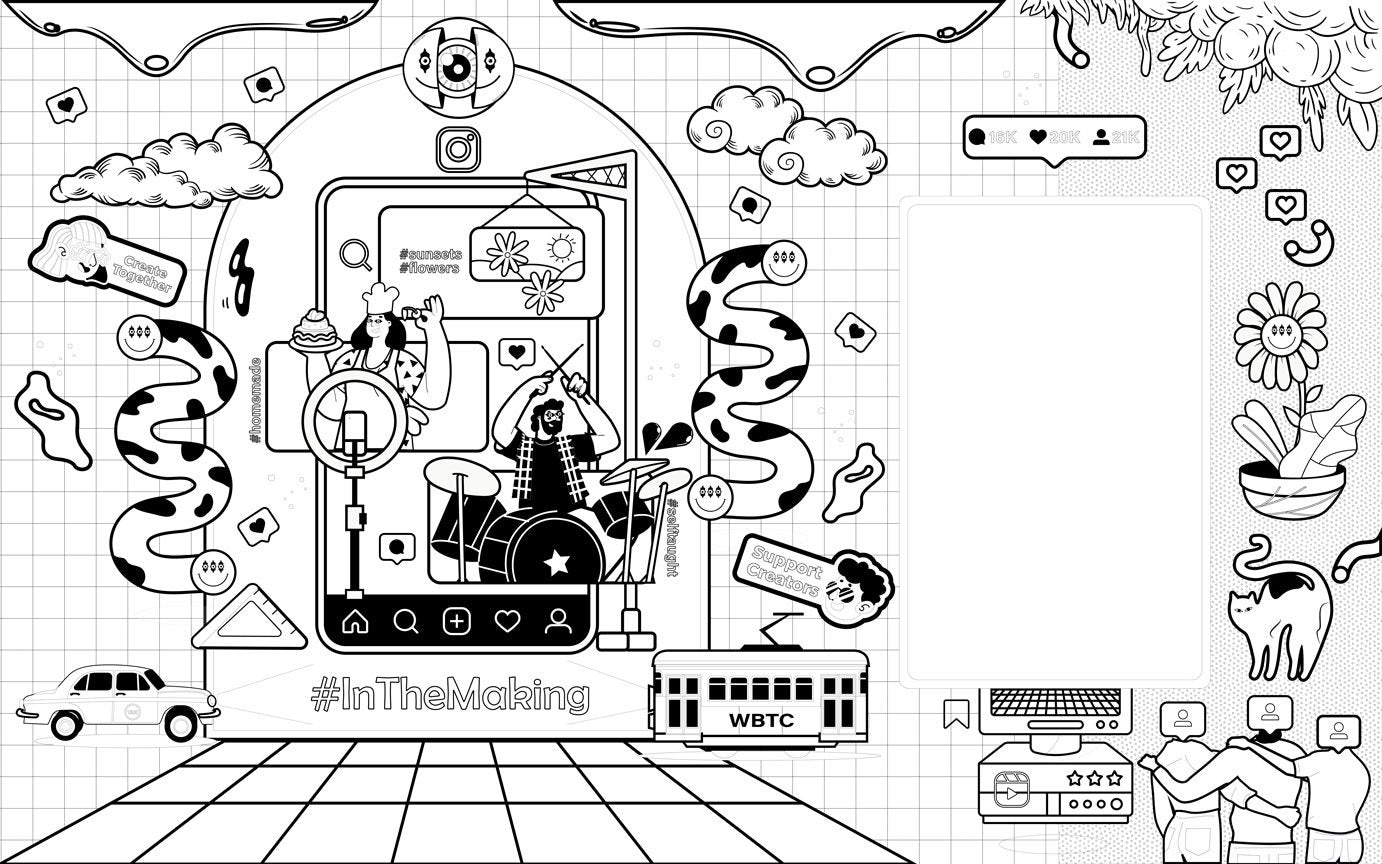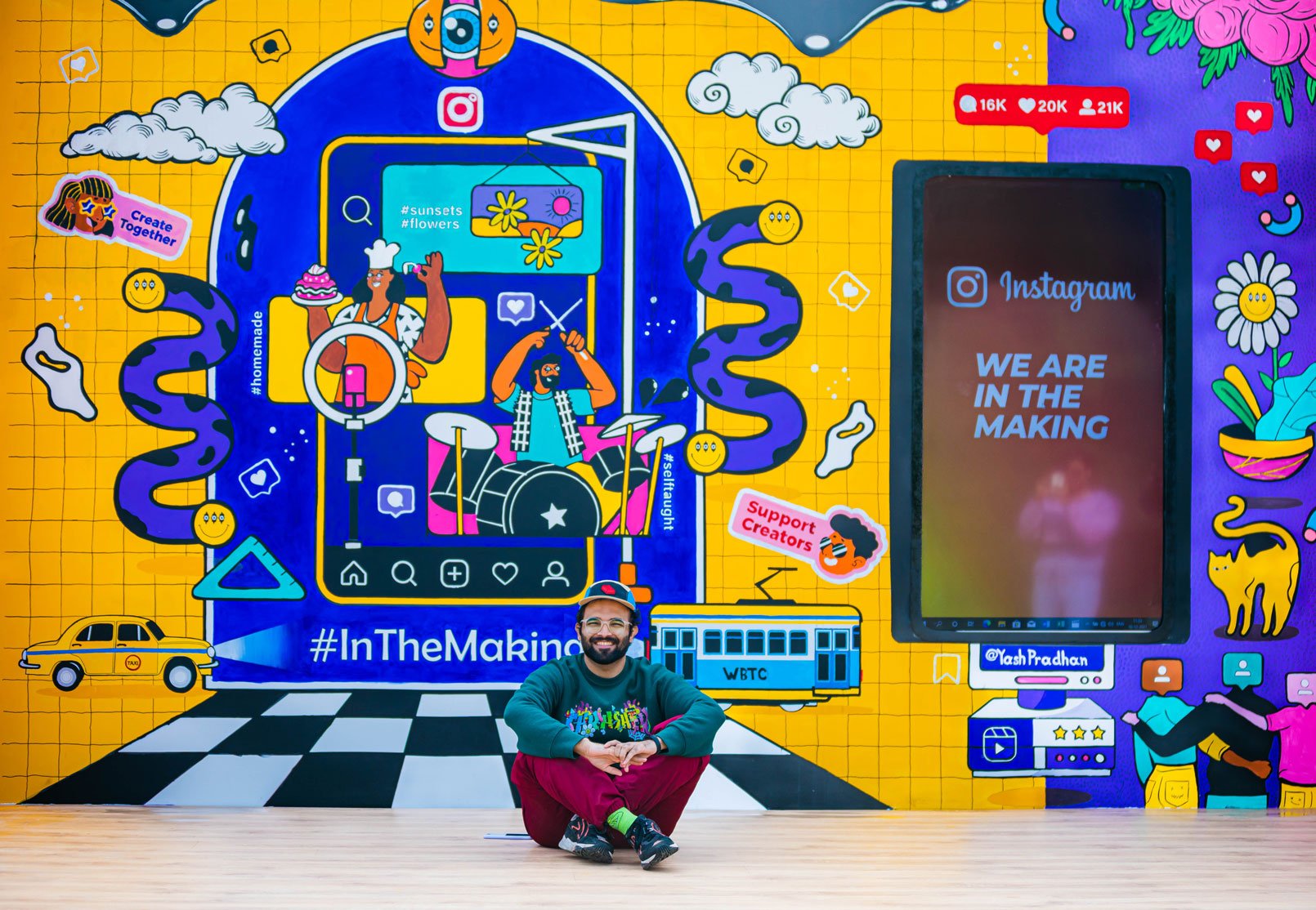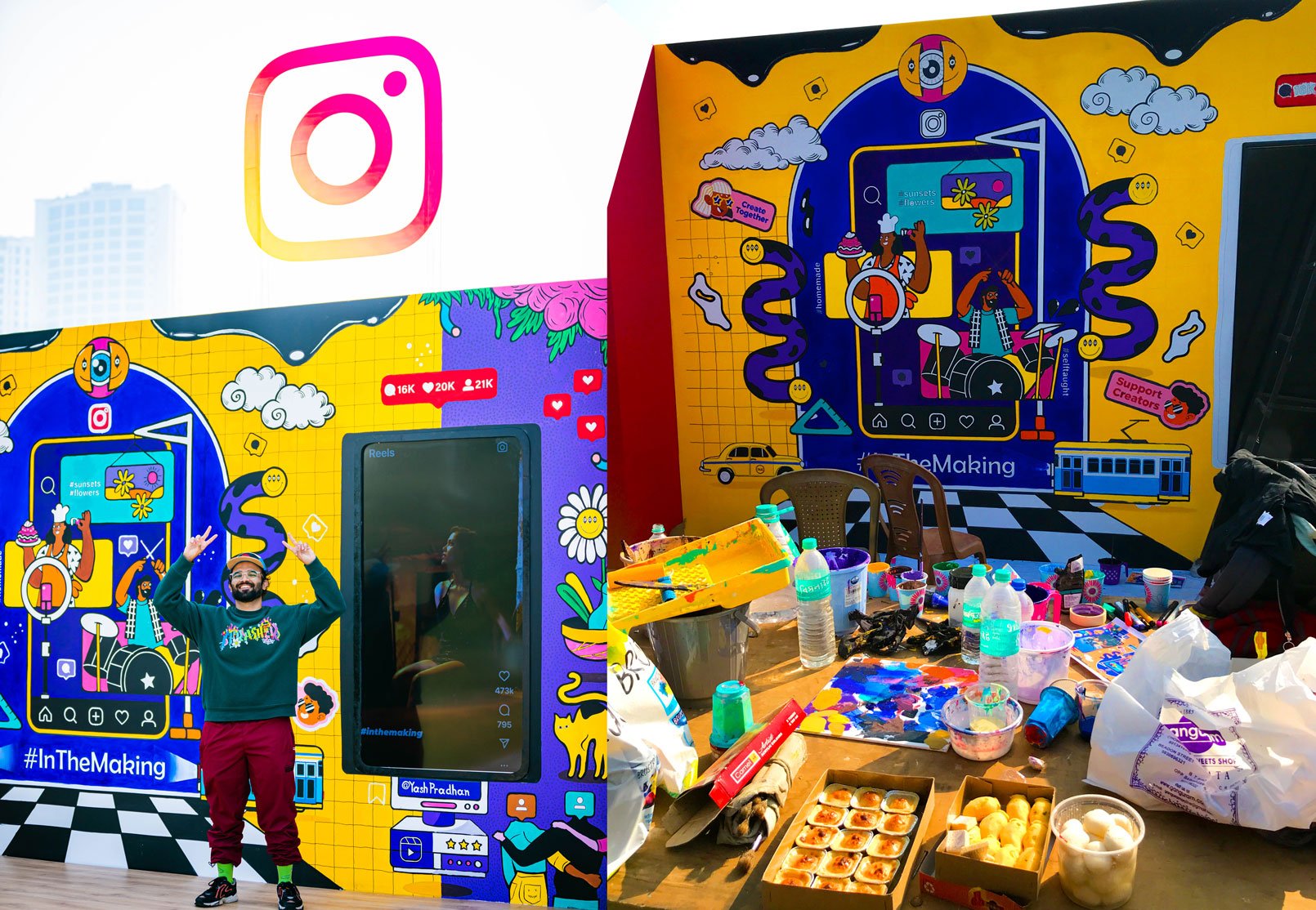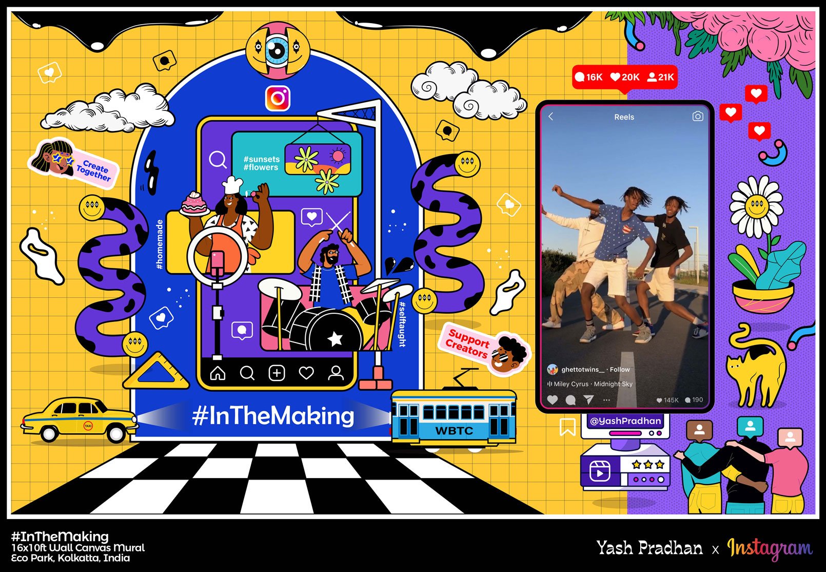 Instagram reached out to me for their ‘In The Making’ Kolkata Installation to create central mural while the side panel (not shown above) was created by Anwesha aka @parkers_illustrations
