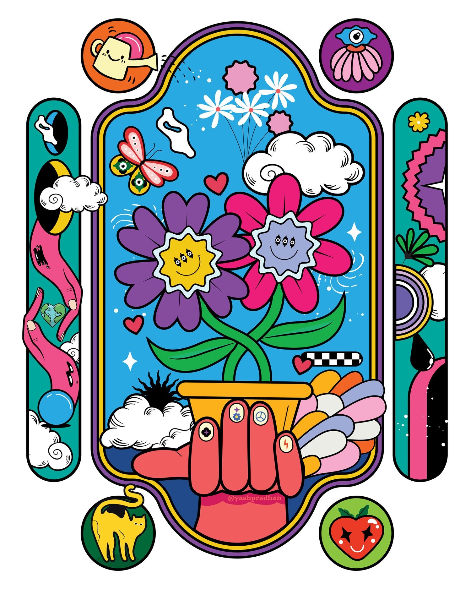Inspired by the beauty of nature, Yash Pradhan's artwork for this collaboration is a visual spectacle, capturing the essence of an idyllic world. The design features lush flowers and ethereal clouds, creating a dreamy reality that beckons viewers to immerse themselves in the enchanting landscapes depicted.