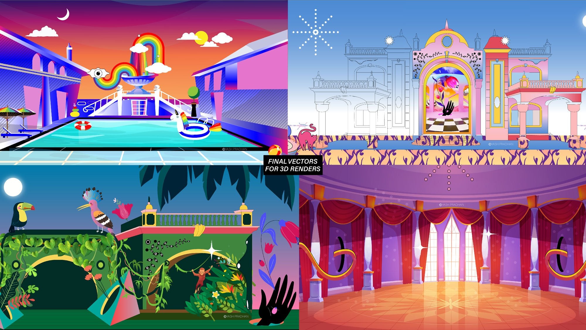 This project started with an idea from an previous collaboration “Belvedere” between Yash Pradhan & Rishabh Gandhi for which Su Real at that time was working on his music, approached me wanting to explore the same format into music video in vivid Virtual Sets with multiple environment.