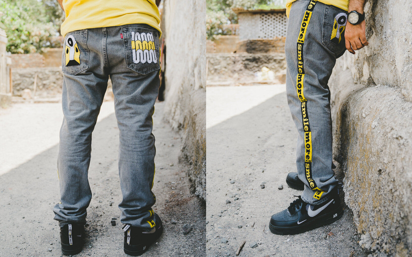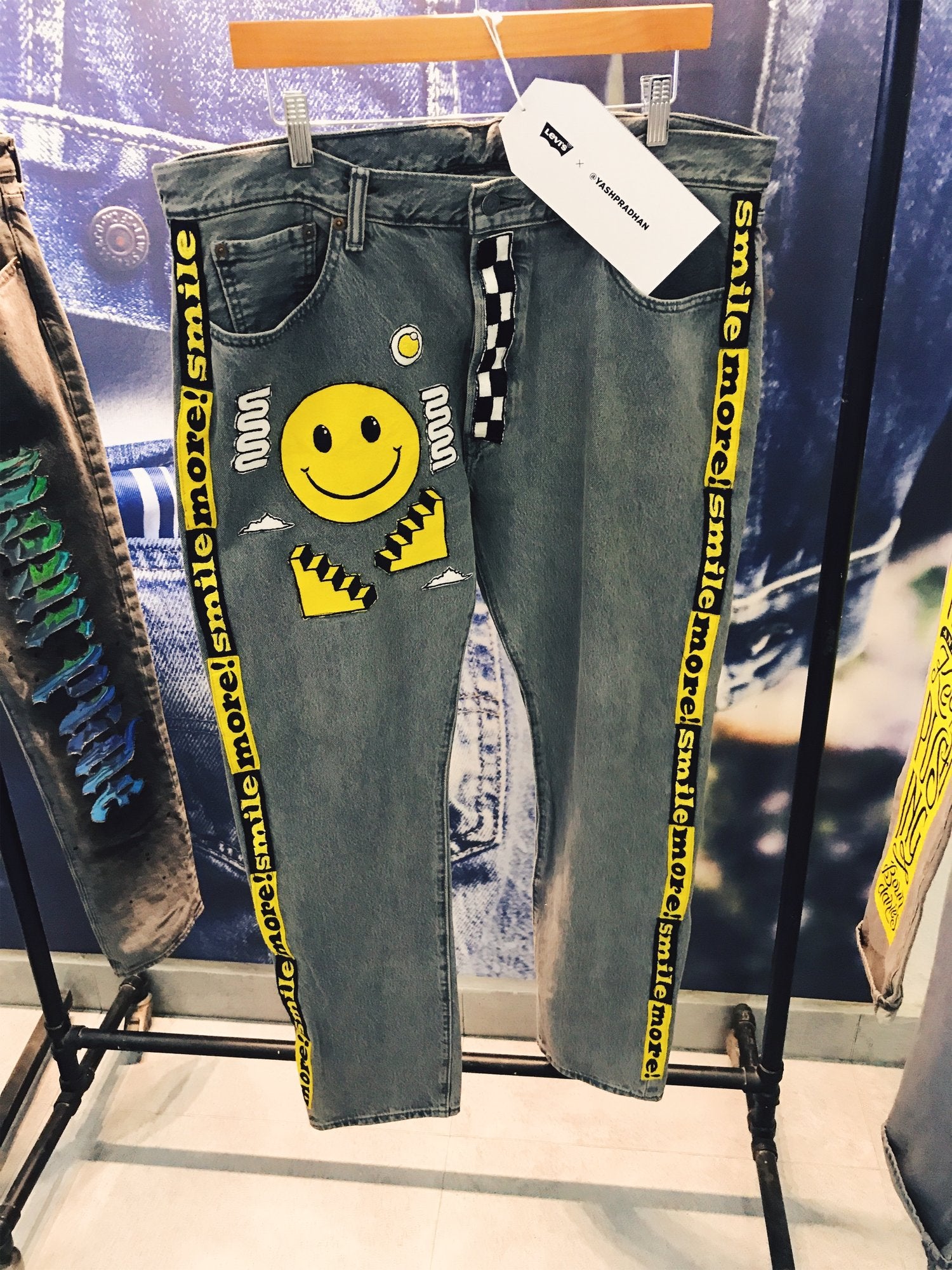 Conveys a wide range of positive, happy, and friendly sentiments, that’s exactly what i want to convey through the artwork on these pair of levi’s denims.