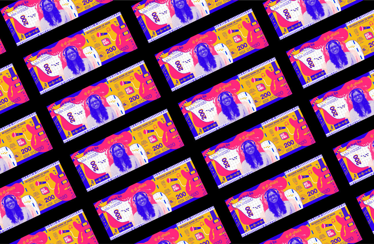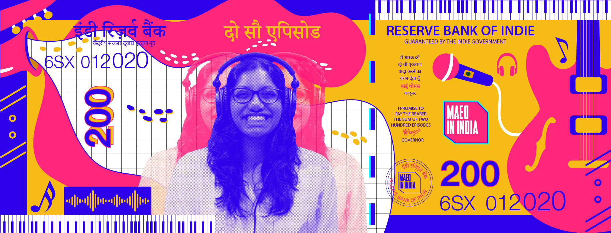 Since this is the 200th Episode, the idea for the design is based on the Rs.200 currency note (India is one of the few countries with one). So it’s a kind of tongue-in-cheek spoof of the Rs.200 currency note (Musical Currency) as their 200th episode banner artwork.