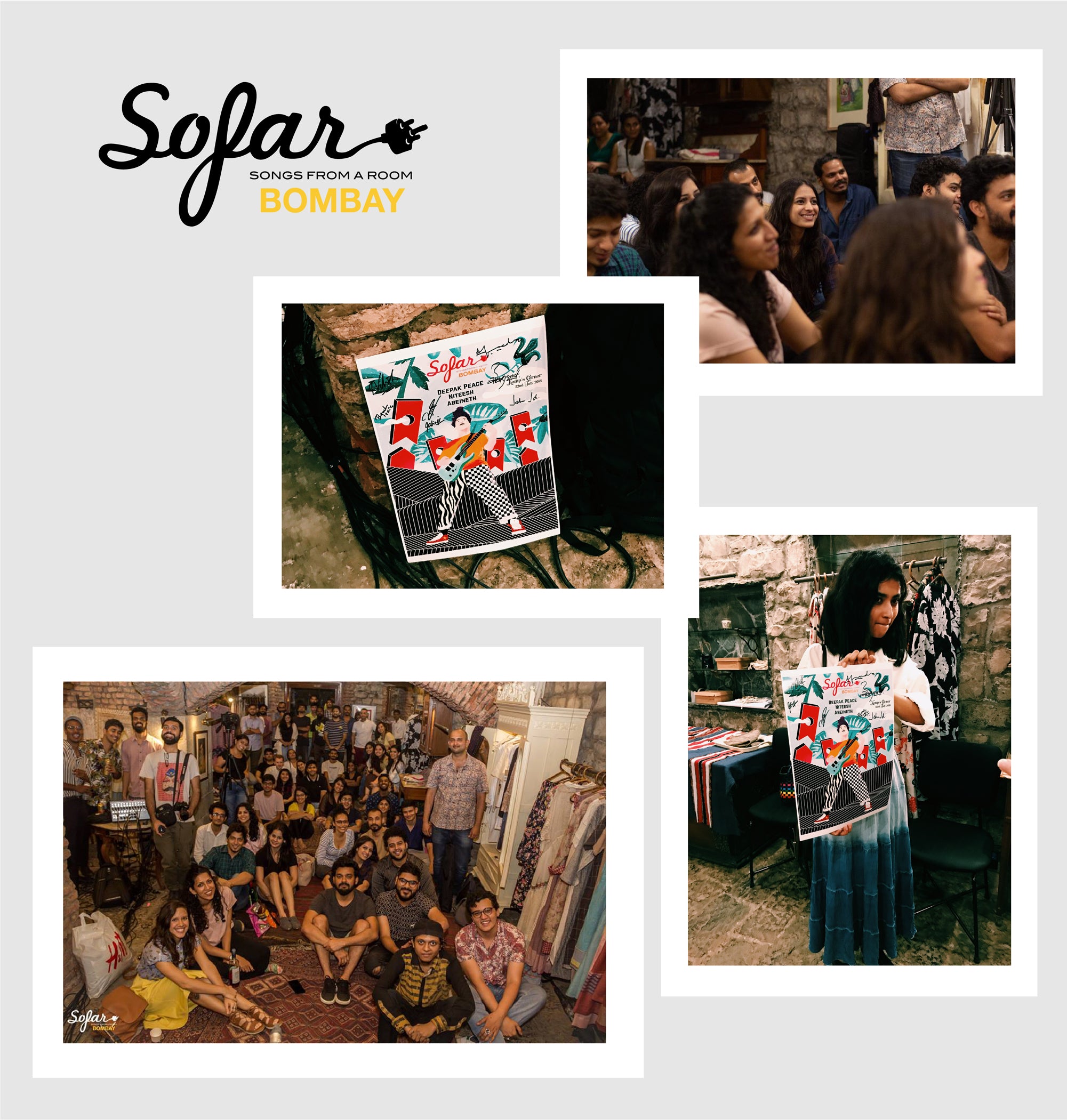 Our July show is a wrap! We had @sofarhyderabad alumnus @niteesh.mp3 , @sofarpune 's own legend Deepak Peace with his band, and our own Bombay native Abeineth returned with all new music. Warm, intimate, and truly special. Thank you to the wonderful, kind people at @melange_world for hosting us. This must-visit 25 year old sustainable fashion boutique lives in a 100 year old former wine cellar. What a dream! Shout out to @bajaao / @bajaaoentertainment for always coming through and being our gear partners. Thank you @yashpradhan for designing this gorgeous poster just for us! And a massive thank you to everyone who turned up for our show and the amazing Sofar crew that set it up. We had such a great time. Our applications for the Aug 26 show are already open. If you'd like to apply for it, find the link in our bio 🔗