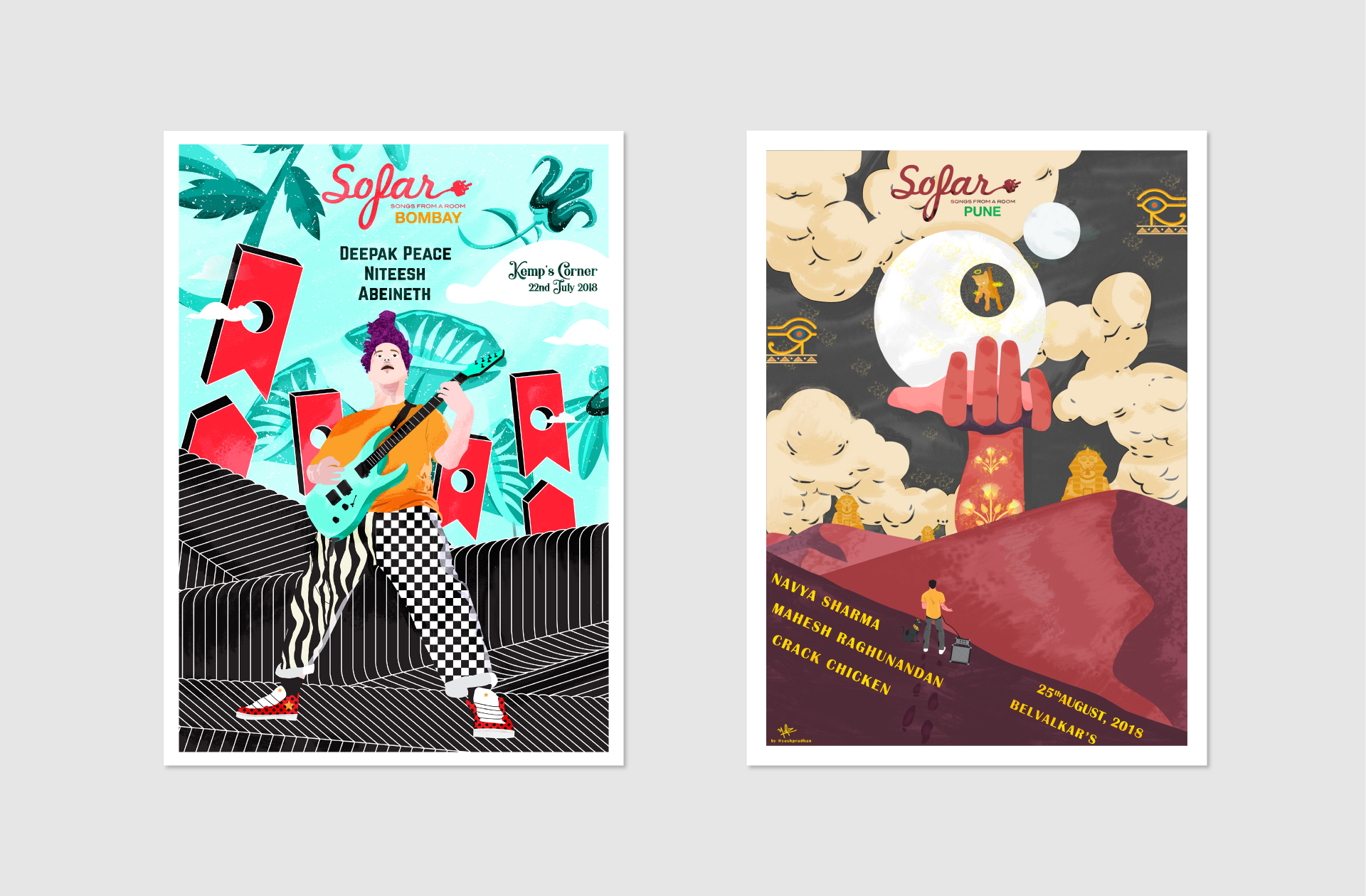 The august gig was a gig where the team came into their responsibilities and you, the audience knew what it is that we did. The music, ambience and artists merged with what Sofar and the team represents. Every month, we hope the visual artist portrays an essence of that in the poster, and we've never been disappointed. @yashpradhan was no less. His art comes from the unison of visual and musical, and that's exactly what @sofarsounds is about. __ #sofar #pune #visual #graphic #art #poster #cat #music #august