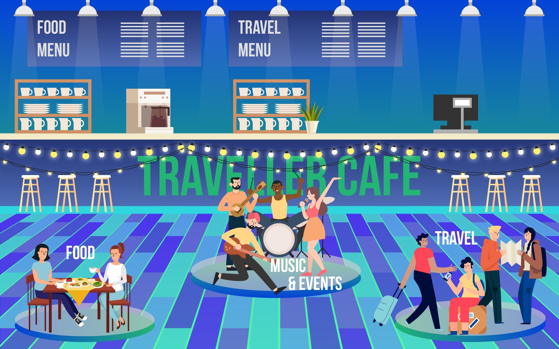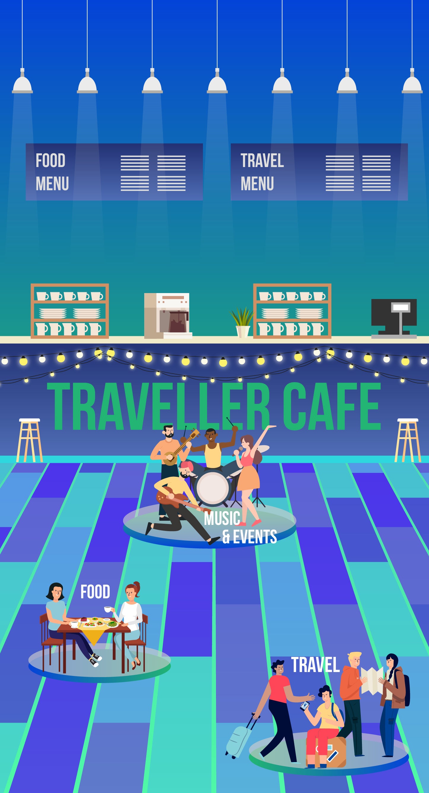 So the poster has the cafe as a overarching idea from which people experience different cultures and music through food as well. We are also claiming to be the world's first travel cafe who is providing experiential travel and also different experiences with the moment person enters a physical space.