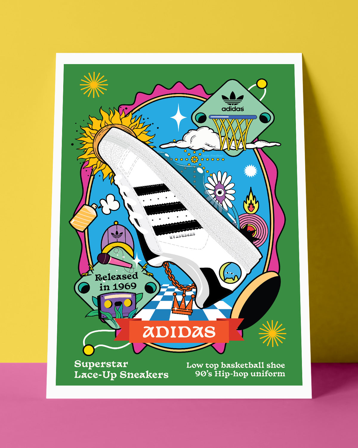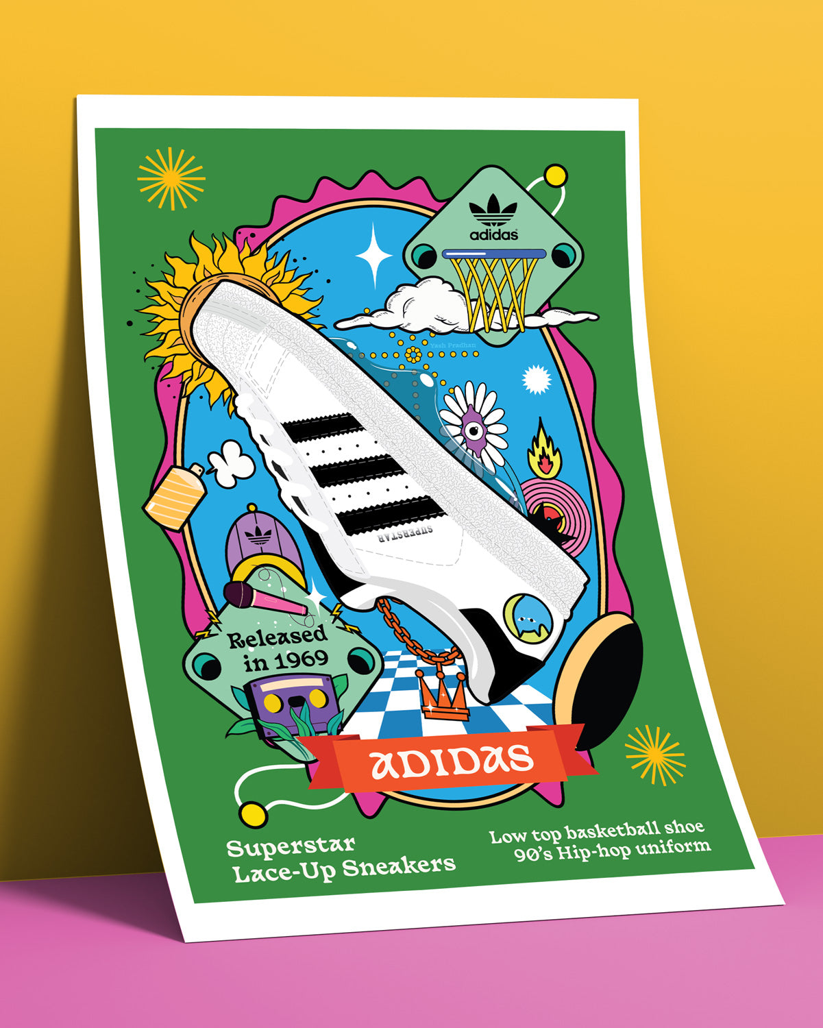 "Adidas Superstar" by Yash Pradhan part of Sneaker Illustration series for Ajio